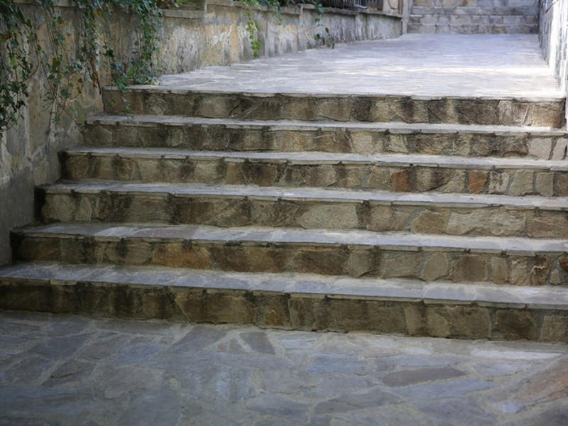 Stone for outdoor steps is impervious to extreme temperatures and weather conditions, making it a top choice for exterior staircases.